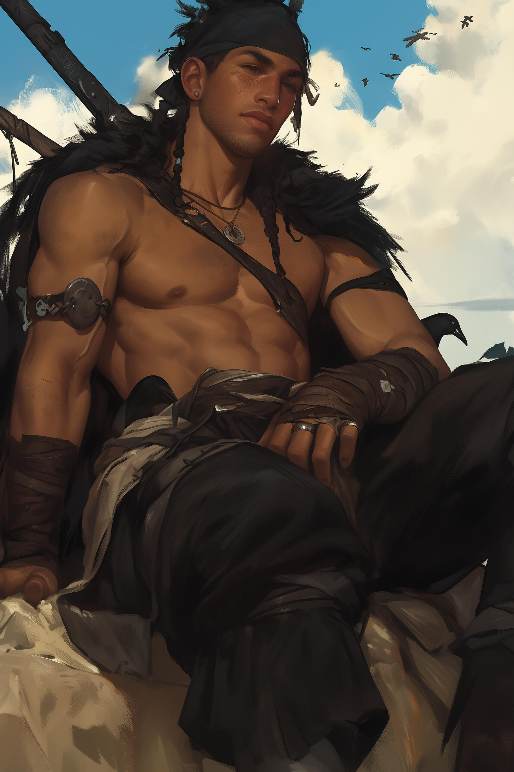 - Favors a massive two-handed sword and a longbow
